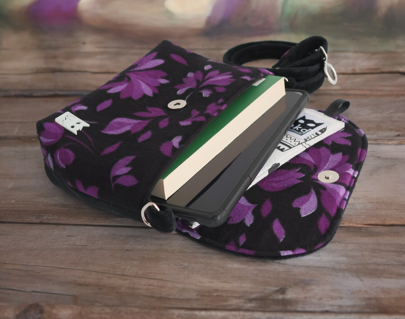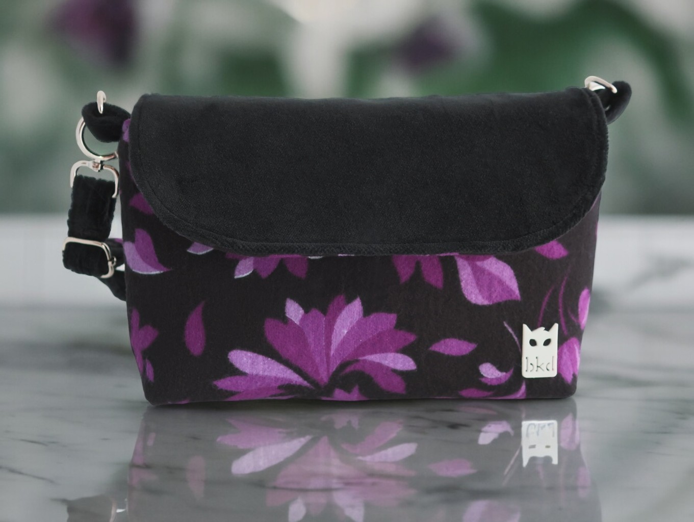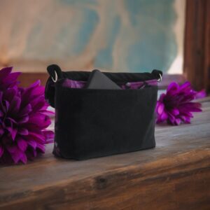 Çanta gövdesi mor – siyah Kadife , Kapak  ve dış cep detayı siyah kadife , İç astarı siyah pamuklu kumaştır