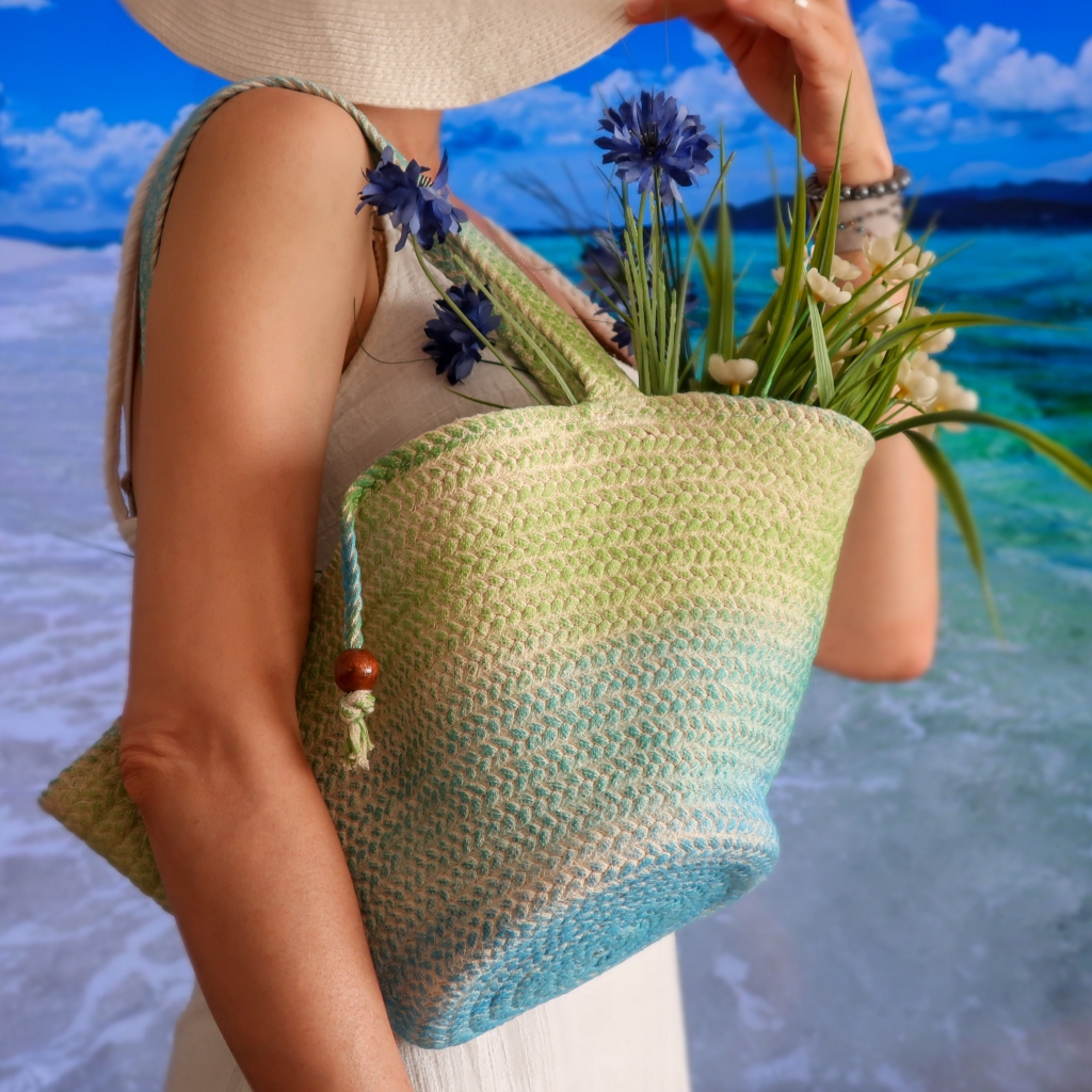Miçonta Rope serisi, pamuk halat iplerle tasarlanıp üzerine el boyaması ile üretilen rengarenk yeni bir seri