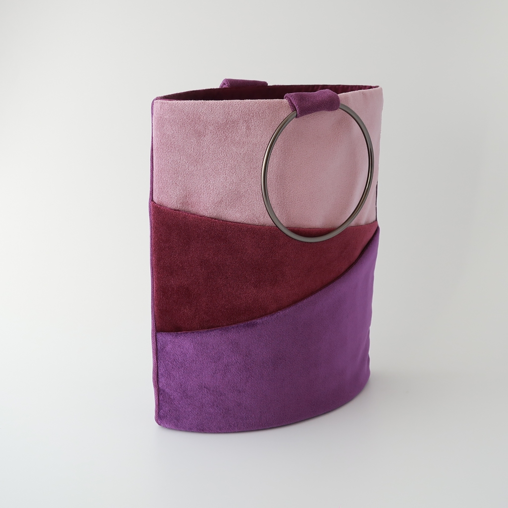Üç farklı mor tonunun kolajıyla tasarlandı